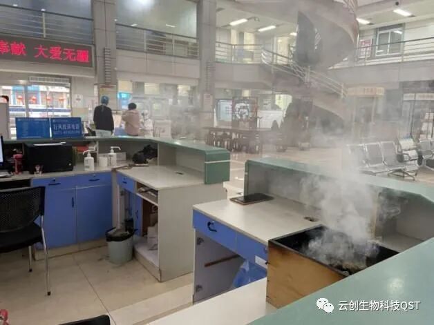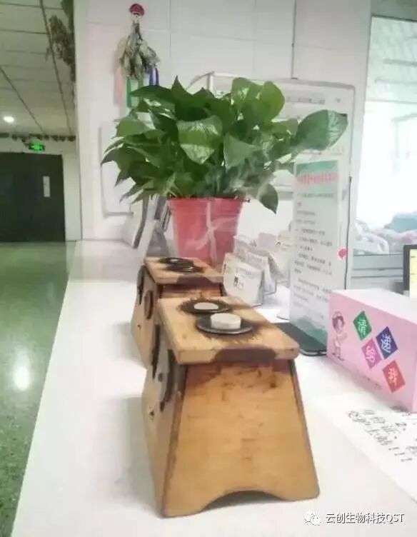 商丘市中医院门诊楼及病区设置熏艾盒,将艾条、艾绒持续燃烧,艾烟持续在医院内弥漫,覆盖院内每个区域。